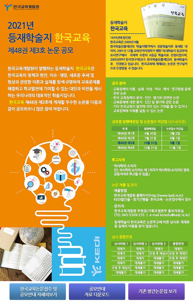 - [일반공지] [한국교육개발원] 등재학술지 한국교육 제48권 제3호 게재논문 공모 안내